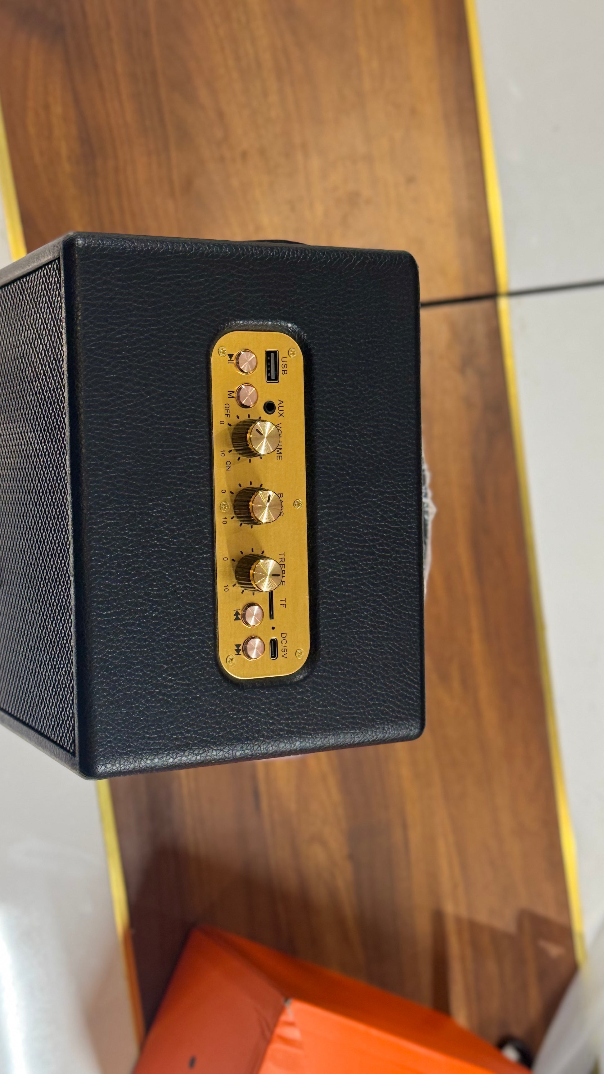 FRANÇAIS Le M18 est un Haut - parleur portable élégant Avec un design élégant et esthétique, Boîte en bois de haute qualité et matériel en cuir,Moderne et au charme classique. Le matériau en bois de la boîte a été soigneusement sélectionné Traité avec un processus spécial pour assurer la solidité Durable, avec des boutons de contrôle d'effets sonores indépendants.Les aigus sont croquants et lumineux, les basses profondes et puissantes. Le poids total est de seulement 2.13 kg. Couleur: noir